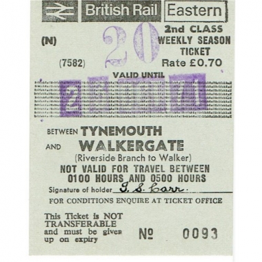 Weekly Season Ticket, BRB(E), Tynemouth - Walkergate, Serial No 0093