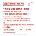 Rail Tour, BR(M), "Main Line Steam Trust" Settle & Carlisle Centenary Special, Serial No 0302