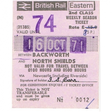 Weekly Season Ticket, BRB(E), Backworth - North Shields, Serial No 0012