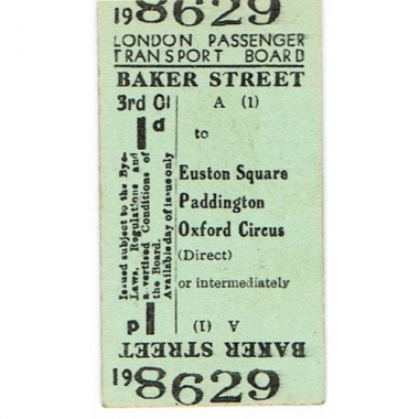 Underground Ticket, LPTB, Baker Street, 1d, Serial No 8629