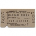 Railway Ticket, District Railway, Walham - Earls Court, Serial No. 6057