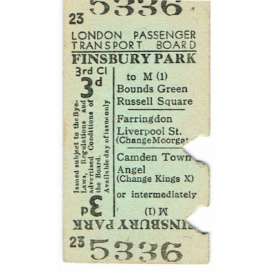Underground Ticket, LPTB, Finsbury Park, 3d, Serial No 5336