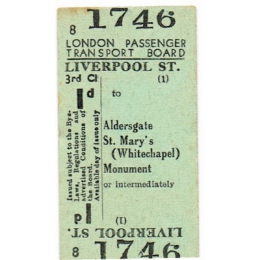 Underground Ticket, LPTB, Liverpool Street, 1d, Serial No 1746
