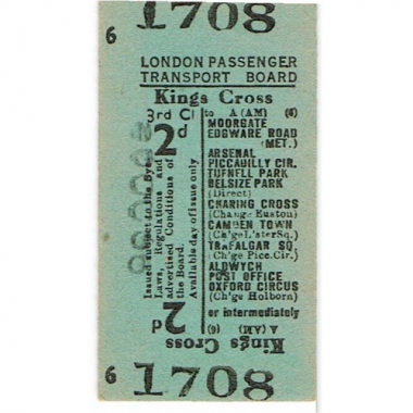 Underground Ticket, LPTB, King's Cross, 2d, Serial No 1708