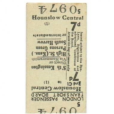 Underground Ticket, LPTB, Hounslow Central, 7d, Serial No 0974
