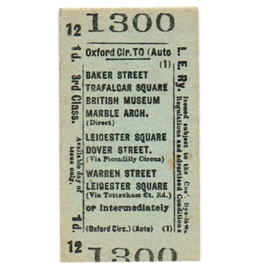 Underground Ticket, LER, Oxford Circle - Baker Street, Serial No. 1300