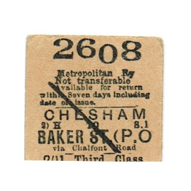 Underground Ticket, Severed Half, Met, Chesham - Baker Street, Serial No 2608